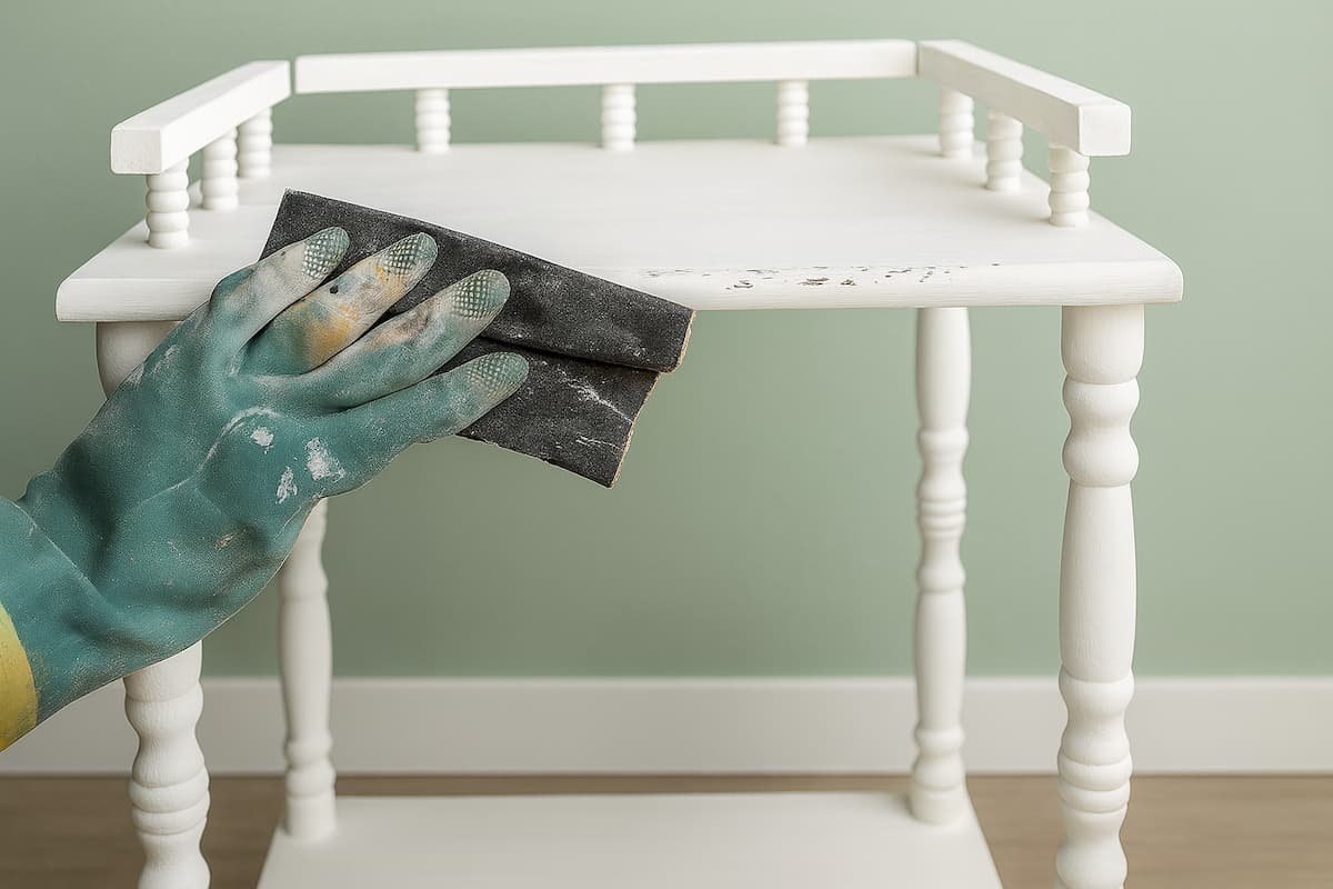 Cuando hemos terminado de darle la pintura, esperamos a que se seque y comenzamos a pasar la lija hasta que logremos el añejado a nuestro gusto.