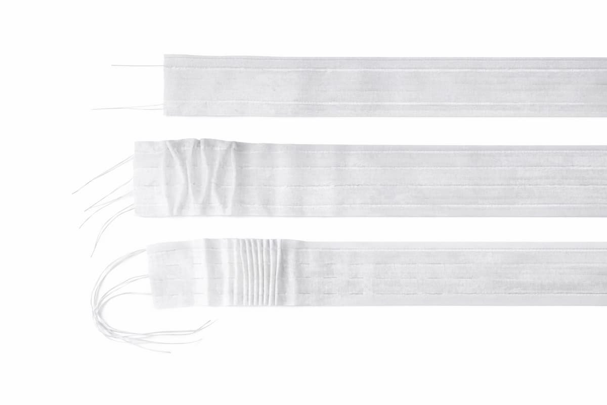 Los diferentes modelos de cinta para fruncir permiten crear pliegues simples, dobles, triples… Basta con estirar de los cordones.