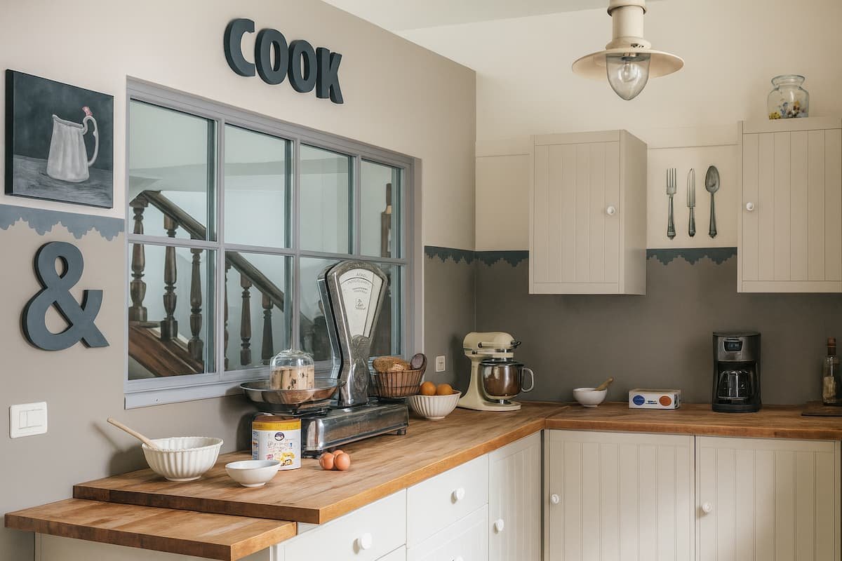 Puede parecer ridículo pero sin duda hace que esta cocina sea especial. Además, existe infinidad de opciones y combinaciones que se pueden usar para adaptarlo a tu gusto, con distintos colores, multitud de tipografías, tamaños distintos, toda clase de materiales que puedas llegar a imaginar… Imaginaos de cuantas formas podríais escribir la palabra «cocina» en vuestra cocina simplemente jugando con todo lo que he mencionado antes. Podríais pasar una vida pensando y aún quedarían muchas más formas de cambiarlo. Y cada cambio supone un estilo distinto en tu cocina.