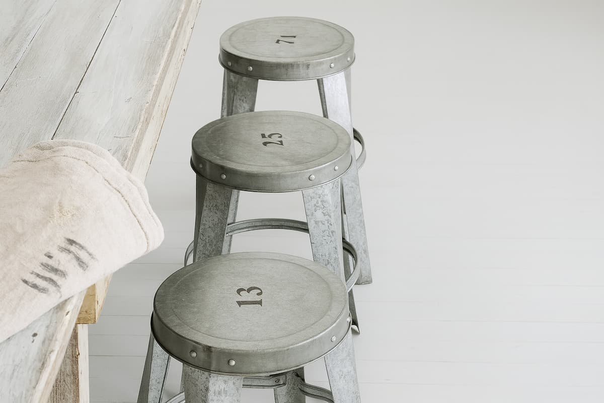 Otro ejemplo genial es el de poner letras o números en las sillas o taburetes. Se puede hacer con una simple plantilla. Ideal para los amantes del cine y el teatro.
