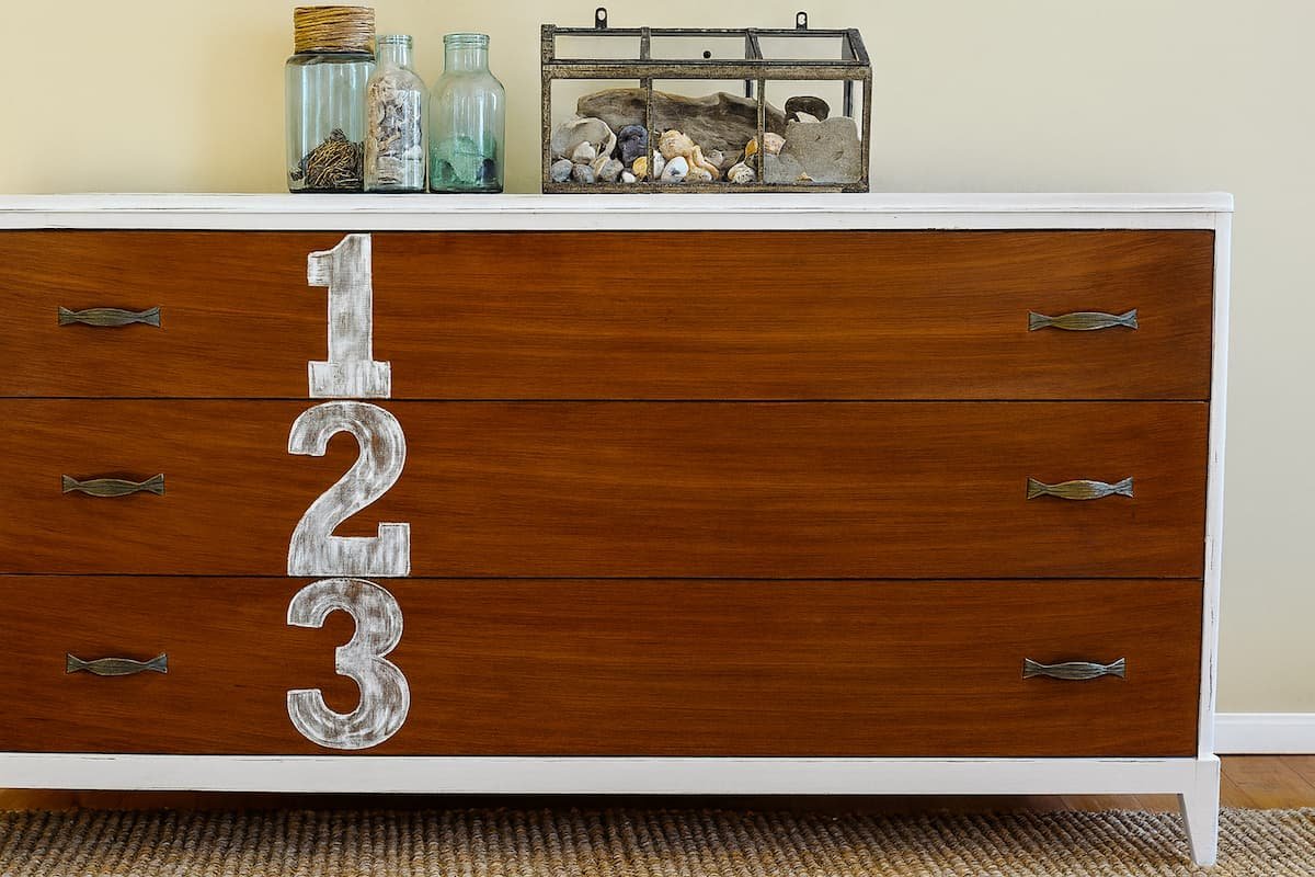 Y si tienes un mueble antiguo y quieres darle un toque más moderno, ¿por qué no pintar unos cuantos números en los cajones del mueble?