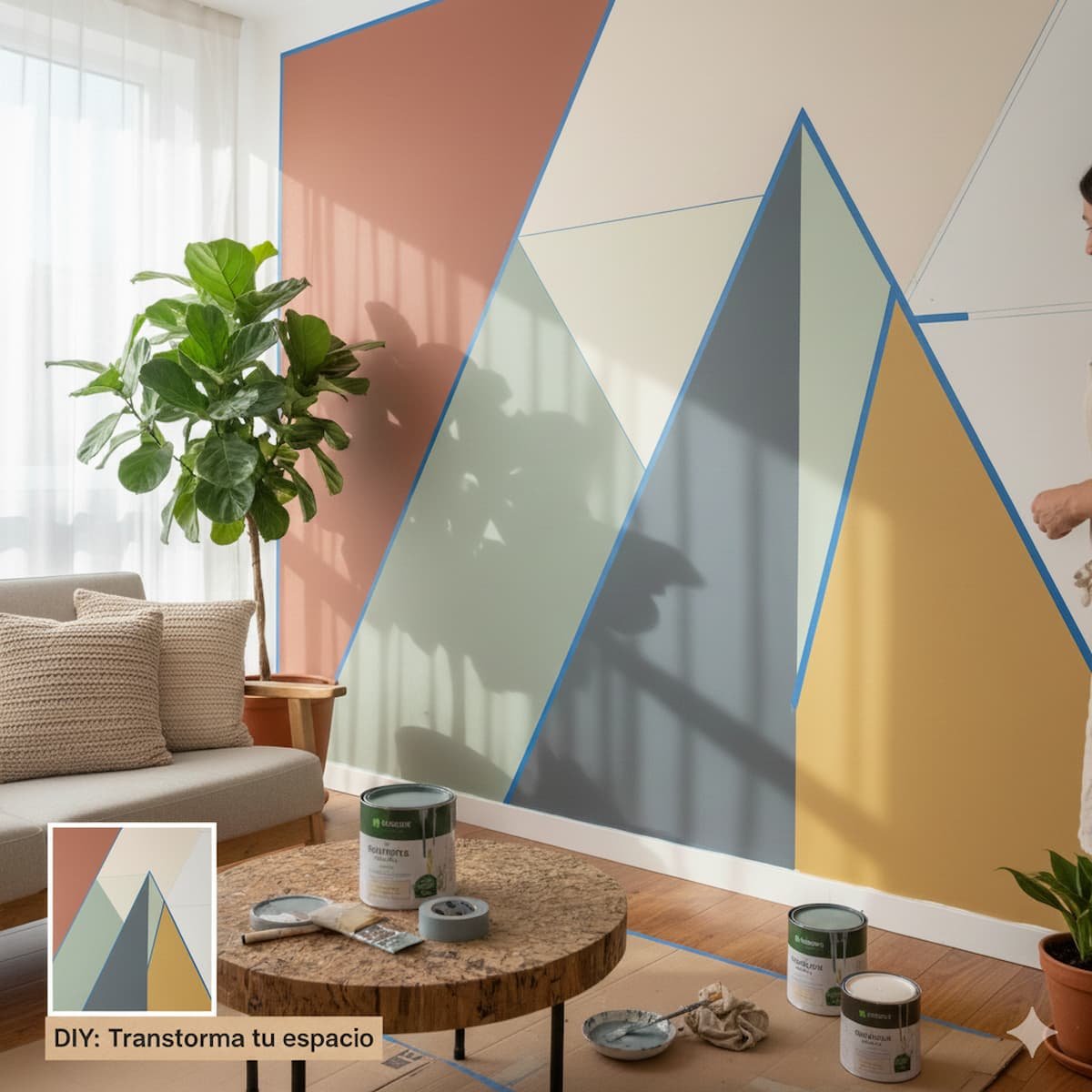 ¿Querés darle vida a tu sala sin gastar una fortuna ni generar residuos innecesarios? Un mural geométrico es una excelente forma de crear un punto focal moderno, artístico y personalizado. Y si lo haces con pintura ecológica y materiales sostenibles, el impacto positivo se multiplica.