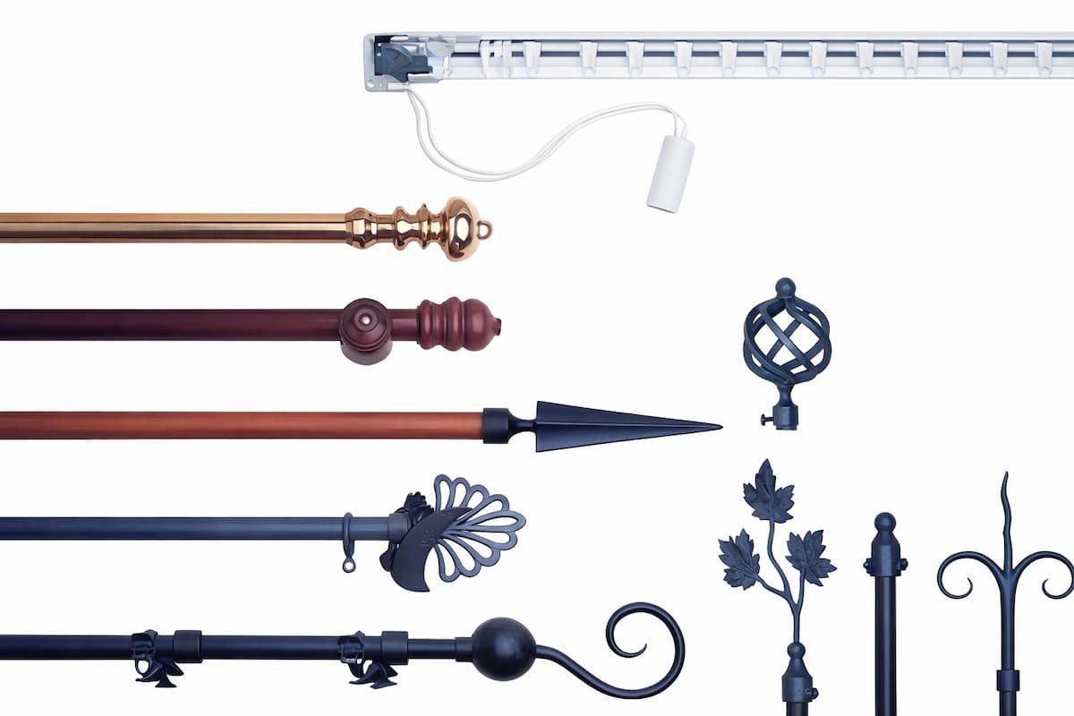 Las barras pueden ser de madera, de bronce, hierro o PVC y están complementadas con gran variedad de anillos y piezas decorativas –ubicadas en los extremos que actúan de topes-.