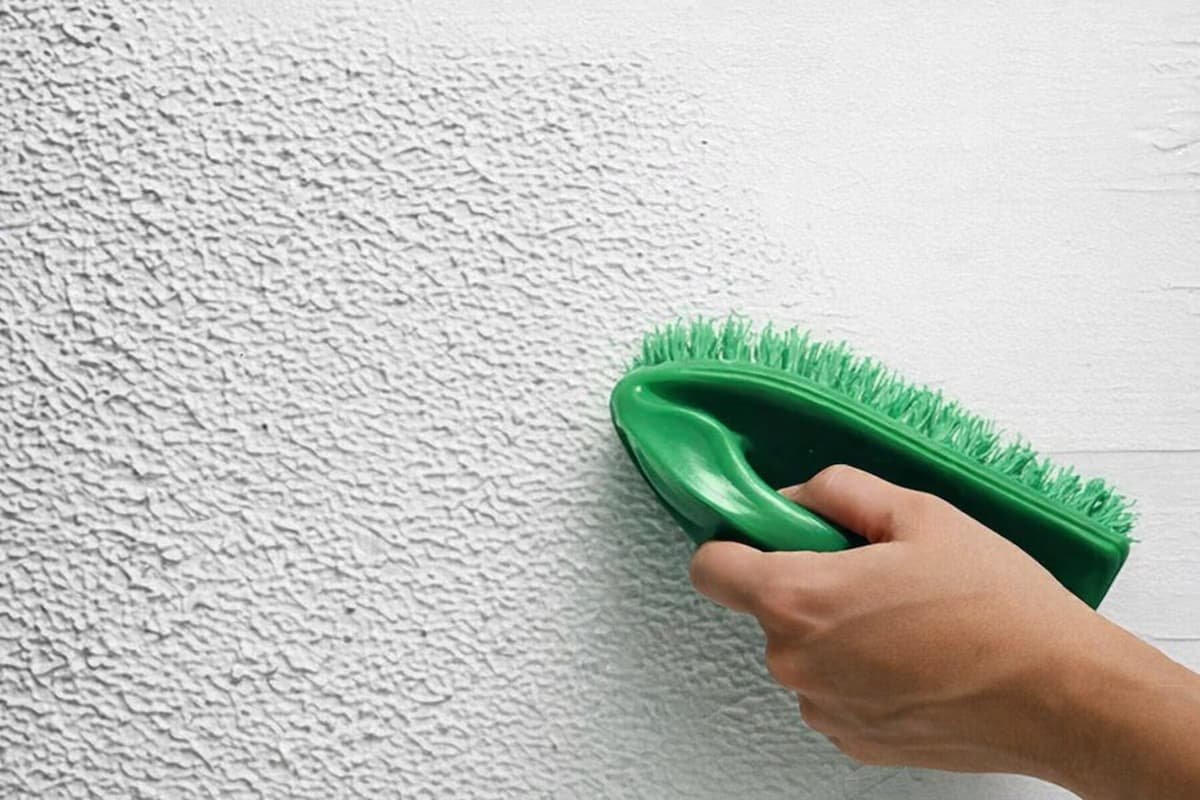 Con cepillo de alambre: cubrir, por franjas la pared con enduido, dejar orear el yeso 5 minutos para que tome consistencia , y puntear con cepillo de alambre.